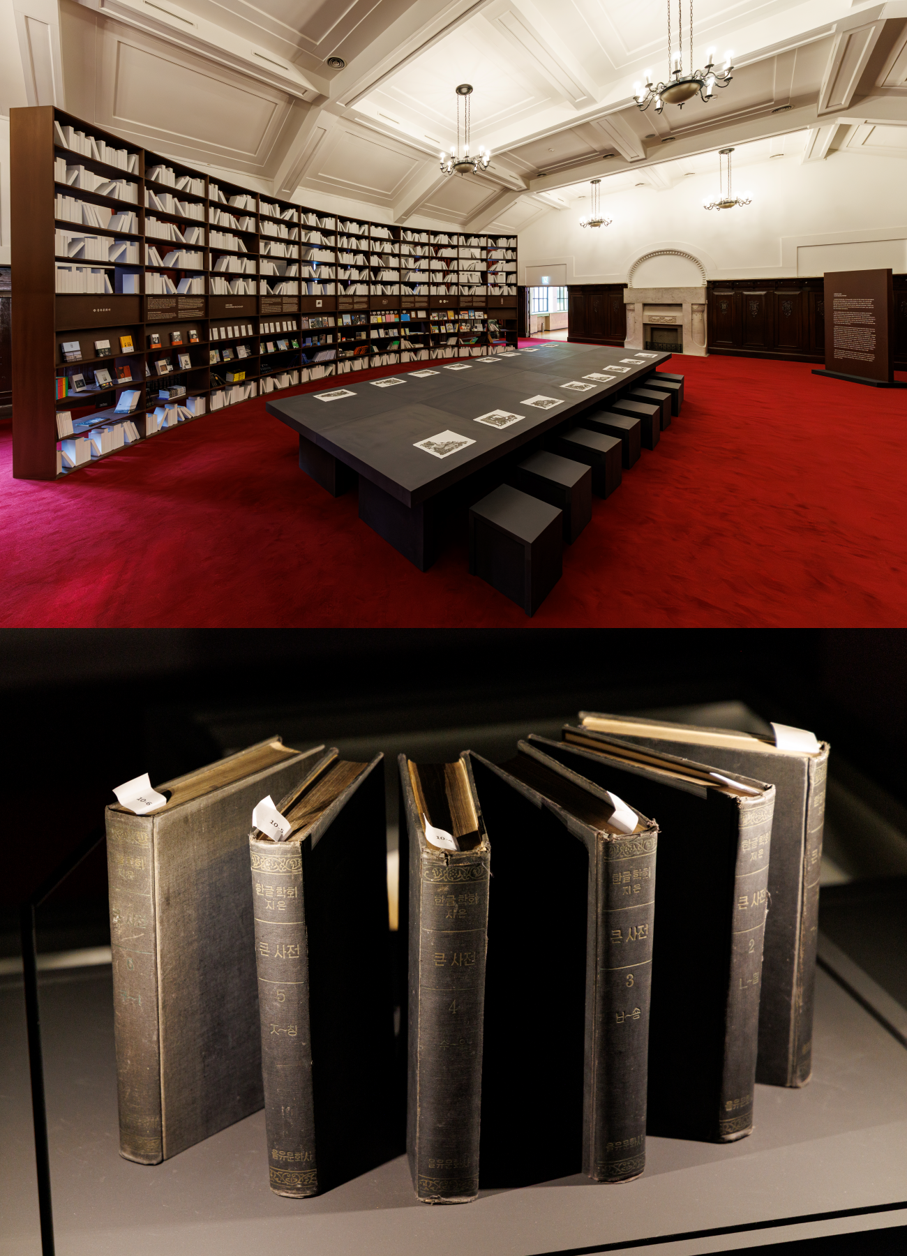 2층으로 올라서면 분위기는 달라진다. 이 구역은 언어와 기록을 통해 미래로 이어지는 상상을 담고 있다. 중심에는 조선말 큰사전 원본이 있다. 일제강점기에 조선어학회가 집필하다 강제 중단된 뒤, 해방 직후 서울역 창고에서 기적처럼 발견된 원고다. 1945년 9월 8일, 2만 6,500여 장에 달하는 방대한 원고가 드러났다. 영화 〈말모이〉의 모티브가 된 자료이자 우리말을 지키려 했던 노력의 상징이다. 오늘날 보물 제2085·2086호로 지정된 사료다. 낡은 종이에 남은 필체와 교정 흔적에서는 언어를 되살리려는 간절함이 전해진다.