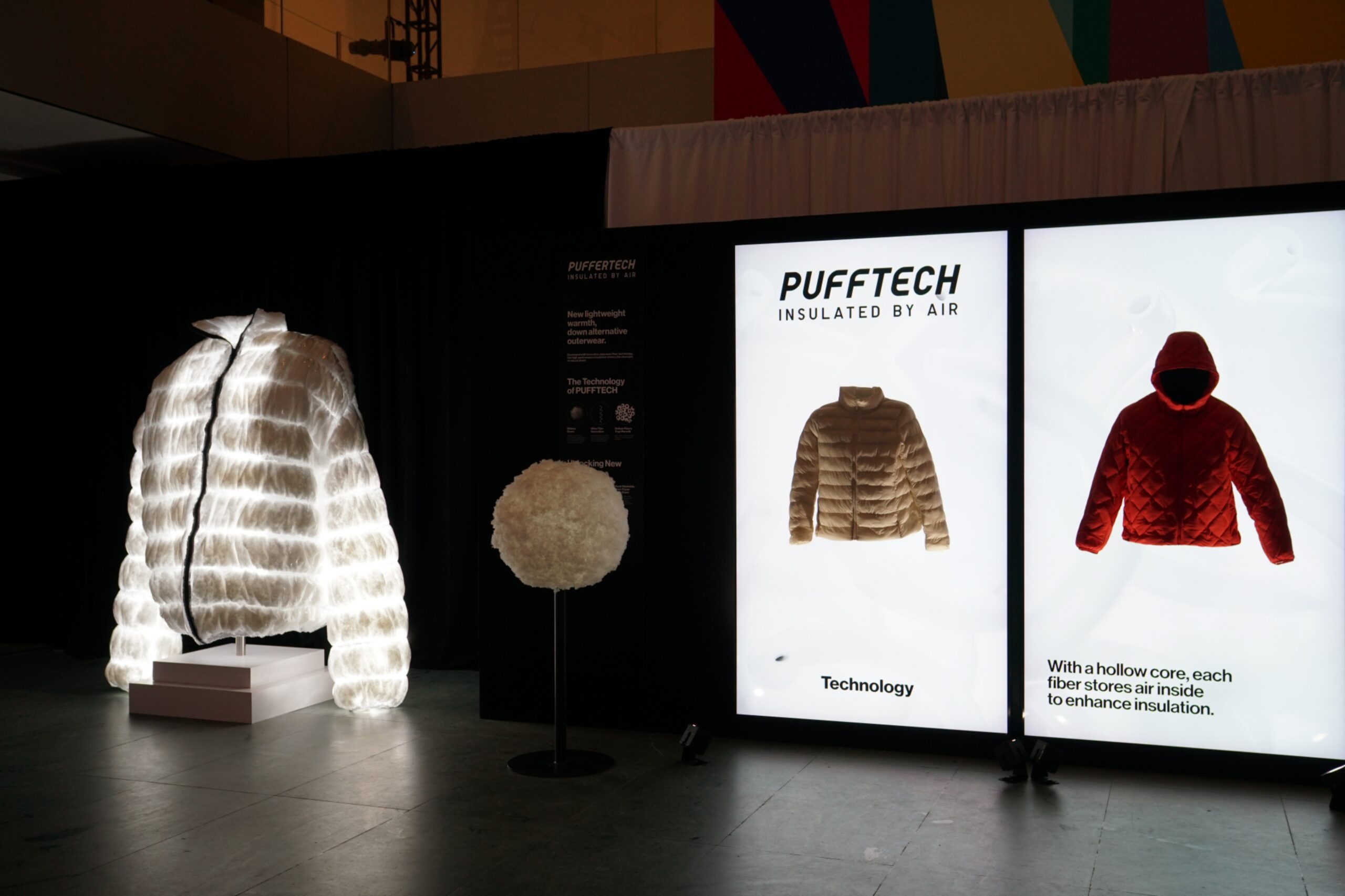 전시의 하이라이트는 ‘모두를 위한 기술(Technology For All)’ 공간이었다. 섬유 기업 도레이(Toray)와 협업 개발한 퍼프테크(PUFFTECH), 히트텍(HEATTECH) 등의 소재를 인터랙티브한 방식으로 체험할 수 있도록 구성된 것이 특징이다. 퍼프테크 존에서는 초경량·보온 소재의 구조를 시각화한 대형 조형물이 설치됐다. 관람객들은 특별 제작된 소재를 직접 손으로 만져보며 삶의 편리를 만드는 라이프웨어의 기술력을 이해할 수 있었다. 전시는 히트텍 소재를 시각적으로 구현한 인터랙티브 존으로 이어졌다. 인체에서 발생하는 수증기를 흡수해 열에너지로 바꾸는 히트텍 기술을 빛과 색으로 표현했다. 인터랙티브 장치 앞에서는 어른과 아이 할 것 없이 모두 손을 뻗었다. 과학 기술이 예술적 체험으로 변모하는 순간, 라이프웨어가 말하는 예술과 과학의 접점이 가장 직관적으로 드러났다.
