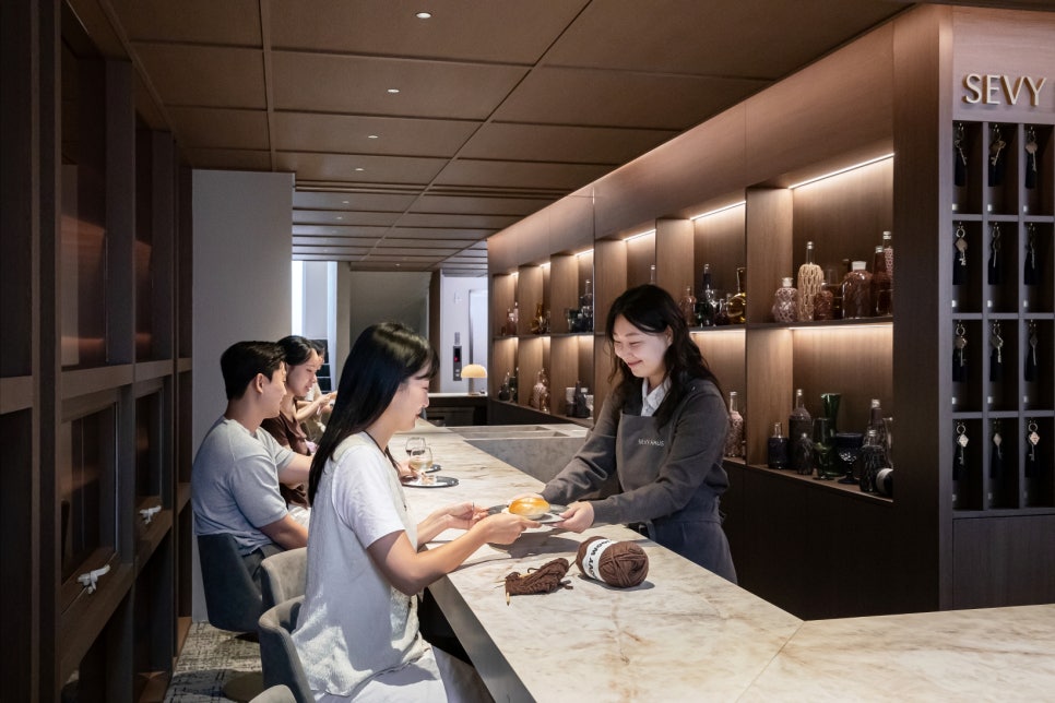 강상원 쎄비가 추구한 건 단순한 럭셔리 서비스가 아니었습니다. 이용자가 실제로 ‘환대 받고 있다’는 감각을 주고 싶었어요. 예를 들어 바늘이 부러져 본드가 필요하거나 도구를 깜빡한 경우 바로 대여를 요청할 수 있습니다. 일반 카페에서는 상상하기 어려운 서비스죠. 쎄비 하우스에서는 가능합니다. 마치 호텔 컨시어지처럼요. 또 이곳에서 근무하는 직원 모두 뜨개 경험자라 이용자의 필요를 섬세하게 이해하고 즉각 대응할 수 있습니다.