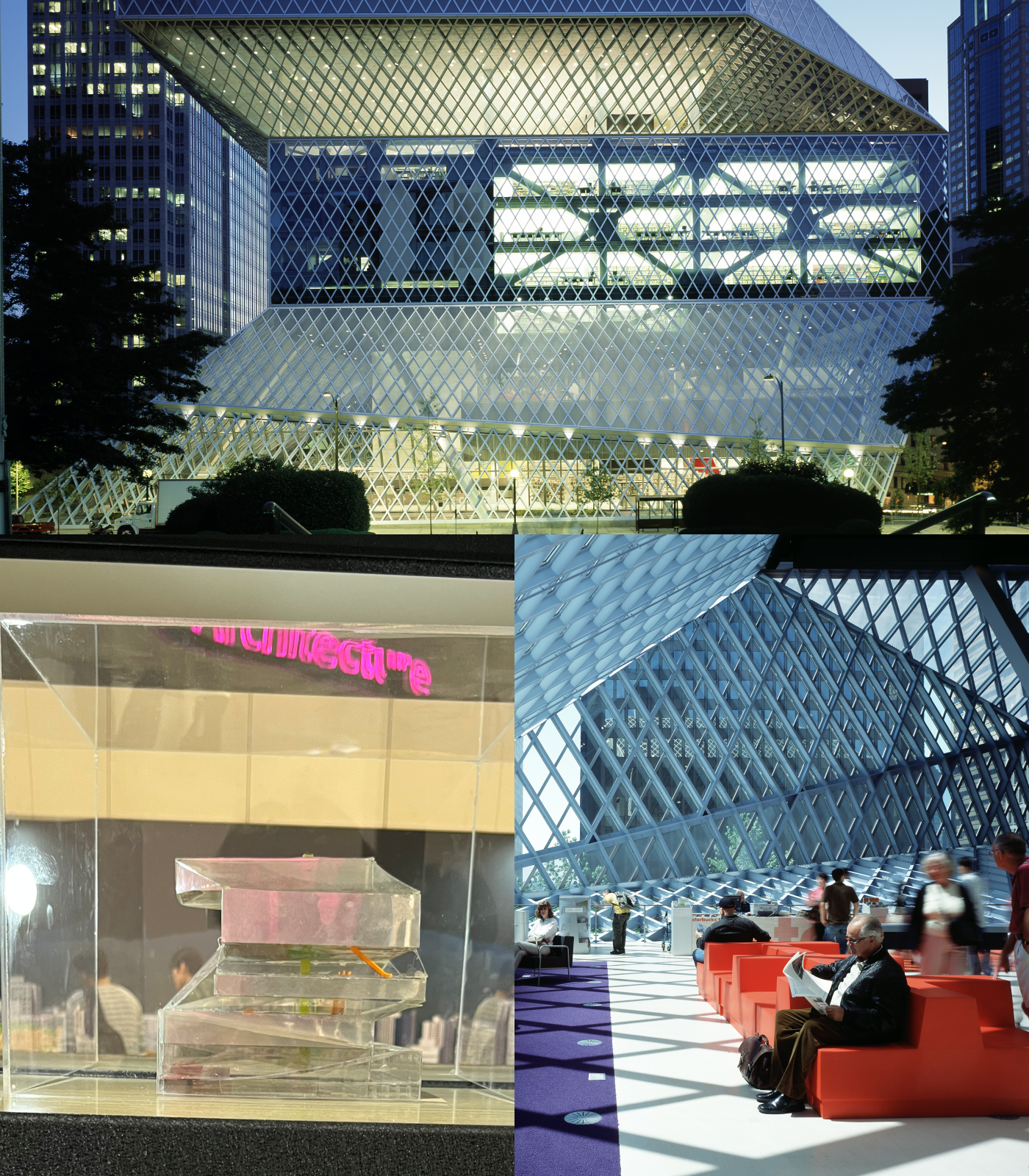건축 전시에서 미실현 작을 공개하는 건 드문 일이 아니에요. 오히려 그 사고 과정을 관객과 공유하는 데 의미를 두었습니다. 중요한 건, 아이디어의 흐름을 보기 위해선 실현되지 않은 작업도 함께 봐야 한다는 거예요. TGB(파리 트레 그랑드 비올리오테크)에서 처음 떠올린 아이디어가 나중에는 시애틀 공공도서관에서 진화했거든요. 결국 프로젝트 사이에 연결되는 아이디어를 볼 수 있어요.