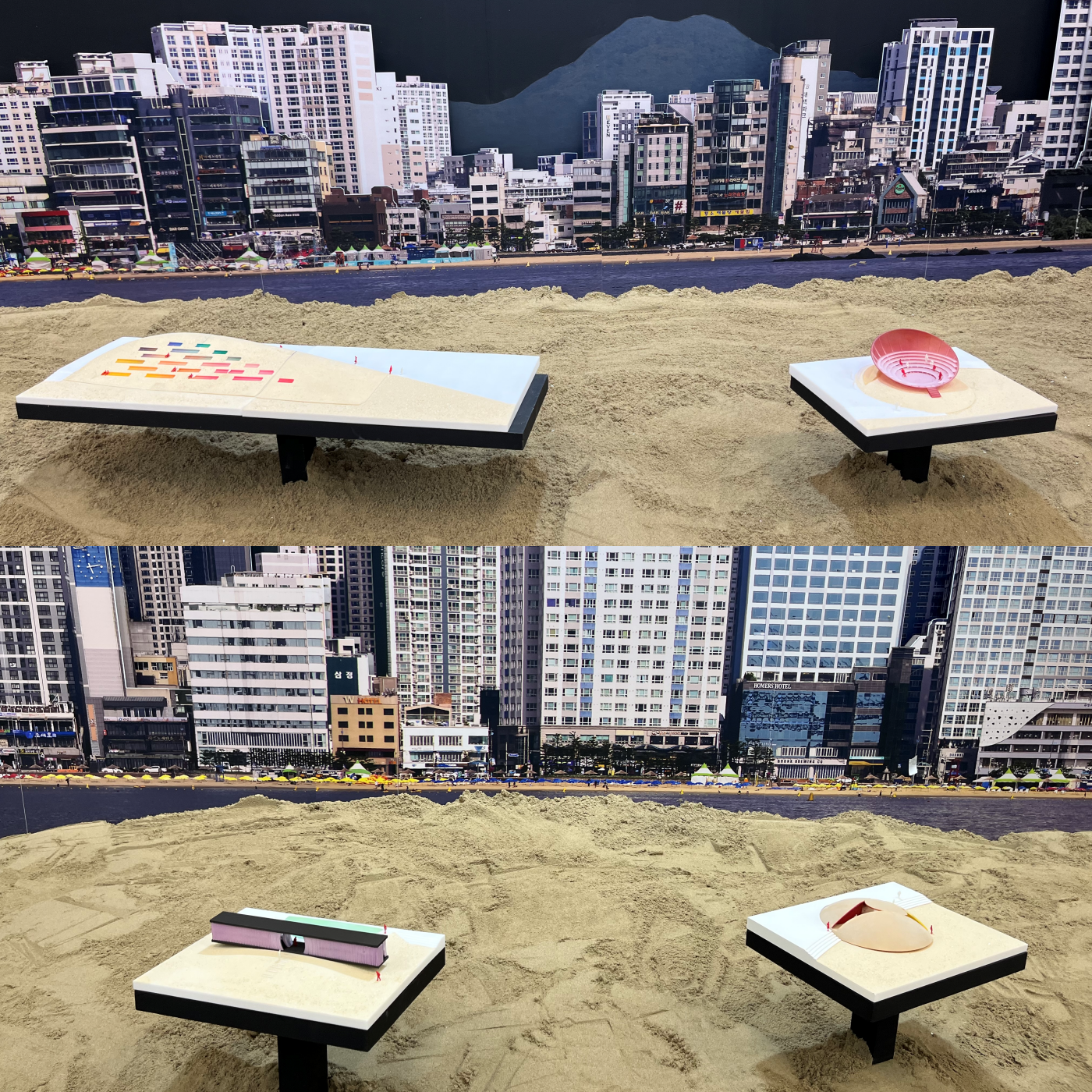 OMA는 부산국제건축제에서 광안리 해변을 무대로 한 공공 프로젝트도 선보였다. 광안리 일대의 공중화장실과 휴식 공간을 새롭게 설계하는 작업으로, 대규모 복합건축을 주로 다뤄온 OMA가 소규모 도시 디자인에 참여한 것은 이례적인 시도다. 편의 시설이지만, 공공성과 문화가 만나는 기능을 살렸다. 모래 사장 위 공간을 활용한 의자가 대표 사례다. 낮에는 쉼터이자 전망대, 밤에는 무대로 변하는 구조다.