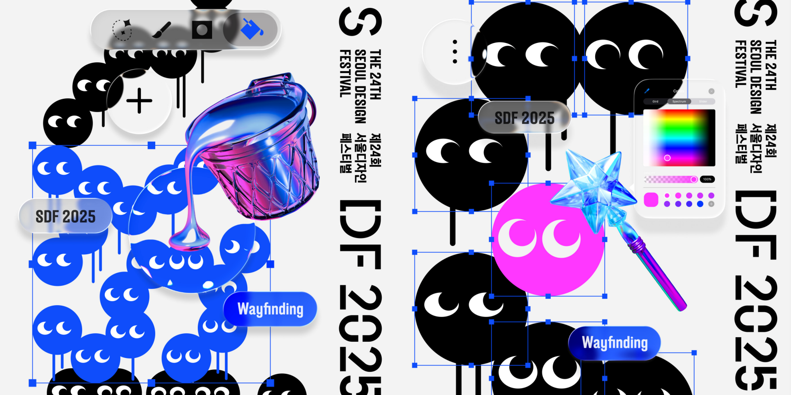 이번 페스티벌의 아트 디렉터는 기획자, 디자이너, 연구원 등 다양한 전문가로 구성된 크리에이티브 그룹 레벨나인(Rebel9)이 맡았다. 국립중앙박물관, 국립현대미술관, 삼성, 현대백화점, 아디다스 등과 협업 했으며 디지털 기술을 활용해 동적인 경험을 설계하는 데 중점을 둔다. 2025 서울디자인페스티벌에서는 변화 그 자체를 보여주는 것보다, 변화를 마주하는 태도에 집중해 전시 디자인을 설계했다. 폴리네시아인들이 수천 개 섬을 항해하며 자신만의 항법을 터득하듯, 각자가 길을 만들어가는 디자이너의 태도를 전시장 곳곳에 담아냈다.