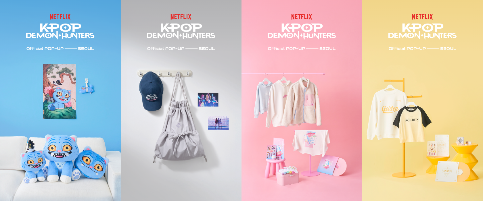 팝업스토어는 작품 속 세계관과 캐릭터를 현실 공간에 구현한 몰입형 체험으로 구성됐다. 관람객은 주인공 루미(Rumi)의 방을 재현한 입구를 시작으로, 캐릭터별 테마존, 영화 속 무대를 옮긴 Golden Stage 등 다양한 공간을 순차적으로 지나며 스토리를 따라가게 된다. 조명, 사운드, 소품 등 감각적 장치를 더해 작품 속 장면에 들어온 듯한 경험을 제공한다.