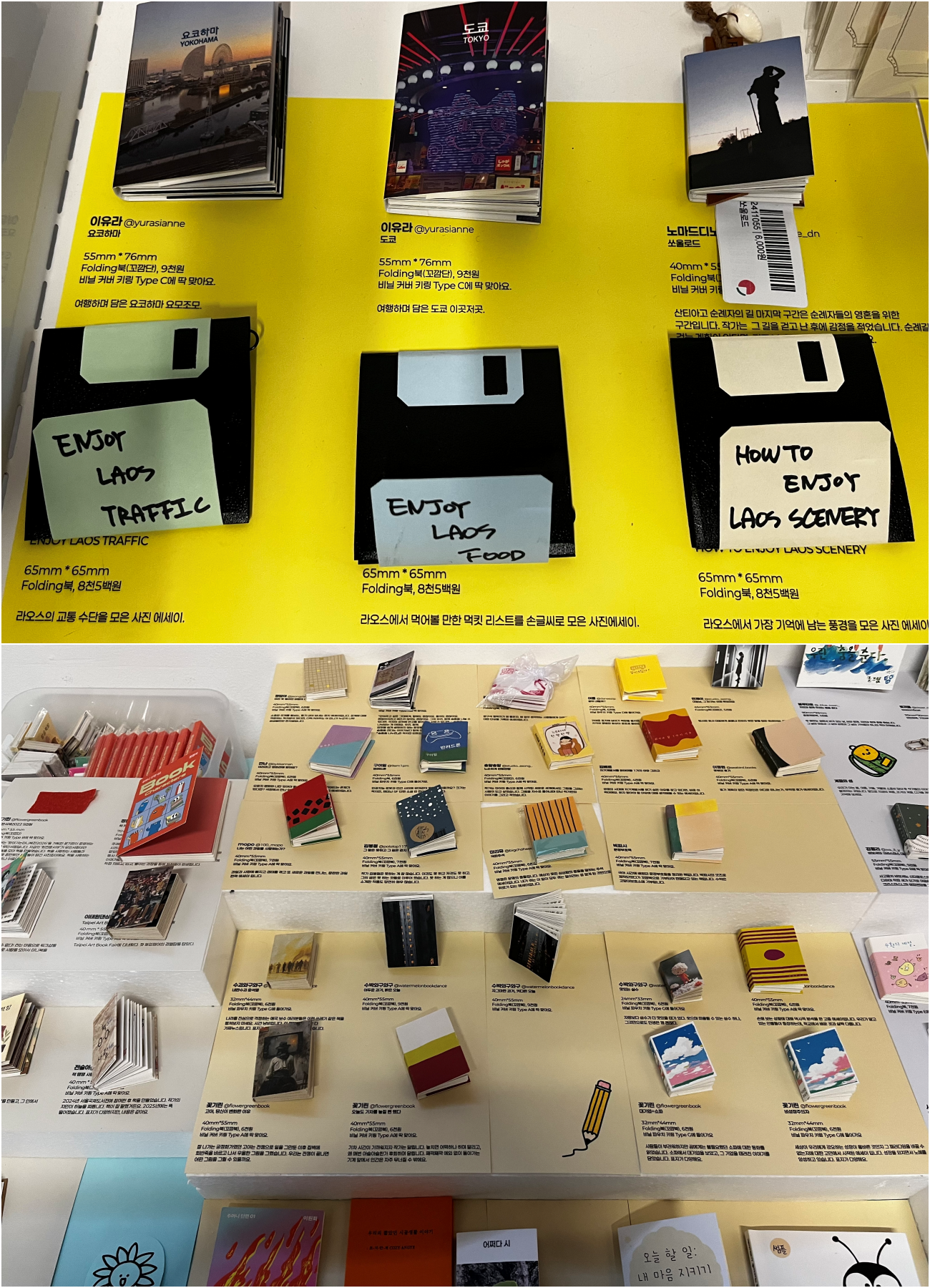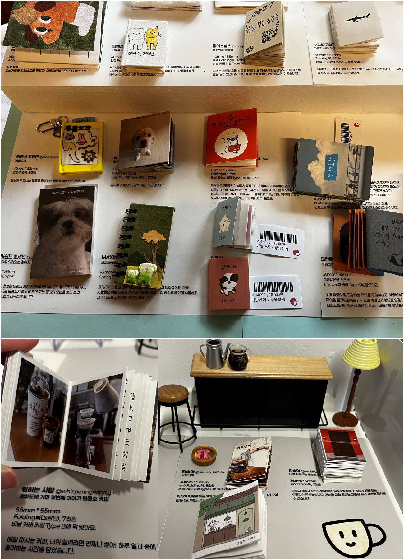 이번이 4회차인데요. 제가 미니북을 좋아해요. 미니북 창작자이기도 하지만, 실제로 미니북을 보면 정신없이 지갑을 여는 덕후거든요. 북페어에서 미니북을 봤는데, 이런 걸 북페어가 아니라 어디서나 살 수 있으면 좋겠다고 생각했어요. 첫 전시에서는 미니북 80권 정도를 한 공간에 모아서 보여줬는데, 행복했어요. 또 미니북이 책을 읽는 작은 계기가 되면 좋겠다고 생각했어요. 짧긴 하지만, 활자를 읽는 거잖아요.