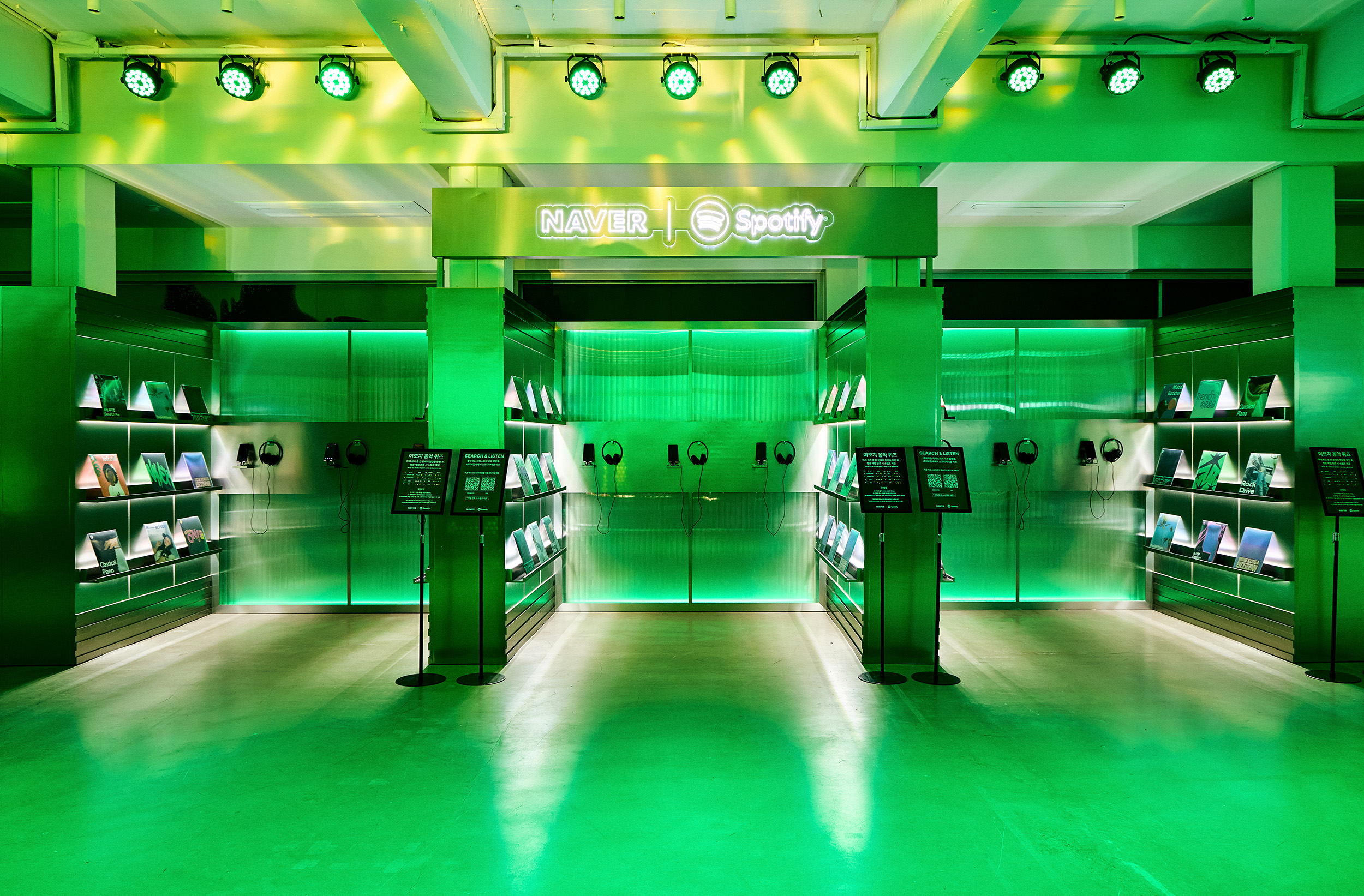 12월 23일~24일, 이틀간 이곳에서는 네이버플러스 멤버십 디지털 콘텐츠 혜택에 ‘스포티파이 프리미엄 베이직’이 추가된 것을 알리고, 서비스를 직접 경험해 볼 수 있는 팝업스토어가 열렸다. 네이버플러스 멤버십 이용자라면 누구나 방문할 수 있었으며, 미가입자는 현장에서 네이버플러스 멤버십에 가입하면 입장할 수 있었다. 네온 그린 컬러의 커다란 건물 안에서 벌어지는 일이 궁금했던 사람 중에는 현장에서 바로 멤버십에 가입하여 입장하는 경우도 있었다.