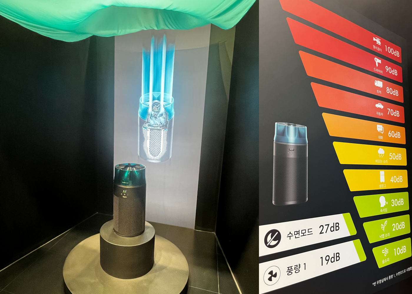 테크존에는 허쉬젯 컴팩트의 조용함을 체감할 수 있는 ‘사일런스 존’이 마련돼 있다. 공기청정기가 작동하는 동안 유지되는 소음 수준을 직접 확인할 수 있으며, 종·북 등의 소품으로 소리의 크기를 비교해보는 방식이다.