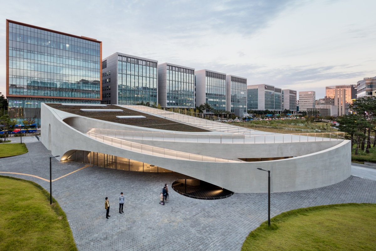 스페이스 K 서울은 코오롱이 시민들의 예술 향유를 위하여 세운 미술관이다. 국내외 덜 알려진 신진 작가와 자신만의 세계를 구축한 중견작가를 골고루 소개하는 전시를 선보이고 있다. 전시만큼 건축도 눈에 띄는데, 75m 길이의 곡면 벽과 아치 형상의 입구로 눈에 띄는 디자인은 매스스터디스의 조민석 건축가의 작품이다. 아치를 따라 있는 경사로와 계단을 올라가면 미술관 옥상에 올라갈 수 있는데, 조민석 건축가는 옥상을 사선으로 설계해 미술관 앞 작은 공원과 연결되도록 했다. 덕분에 관람자는 빼곡한 빌딩 숲에서 시원하게 트인 경치를 즐길 수 있다.