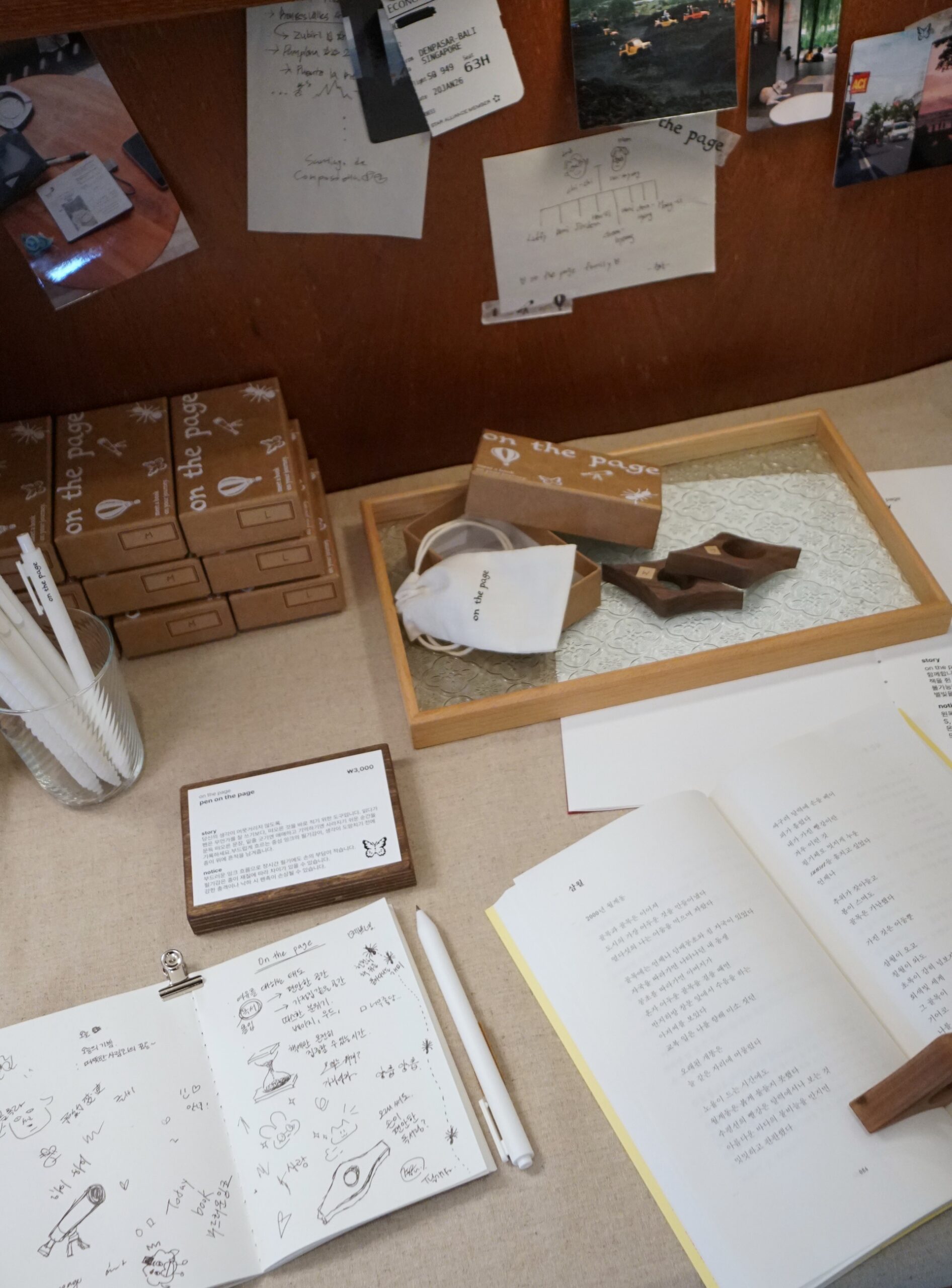 텍스트힙 유행을 타고 책을 둘러싼 문화와 형식은 분명 다채로워졌다. 하지만 통계청이 발표한 사회조사 결과를 보면, 독서 인구 1인당 연간 독서 권수는 2021년 이후 매년 감소하고 있다. 책을 둘러싼 말과 장면은 늘었지만, 실제로 읽는 시간은 오히려 줄어들고 있는 셈이다. 온더페이지는 책 앞에 머무는 시간을 더 깊고 아름답게 만드는 것을 목표로 한다. 그 실험을 위해 독서에 몰입할 수 있는 환경을 마련하고, 도구를 개발했다. 팝업에서 보낸 시간은 짧지만, 그 경험이 반복될 수 있다면 독서는 다시 특별한 취향이 아니라 생활의 일부가 될 수 있지 않을까.