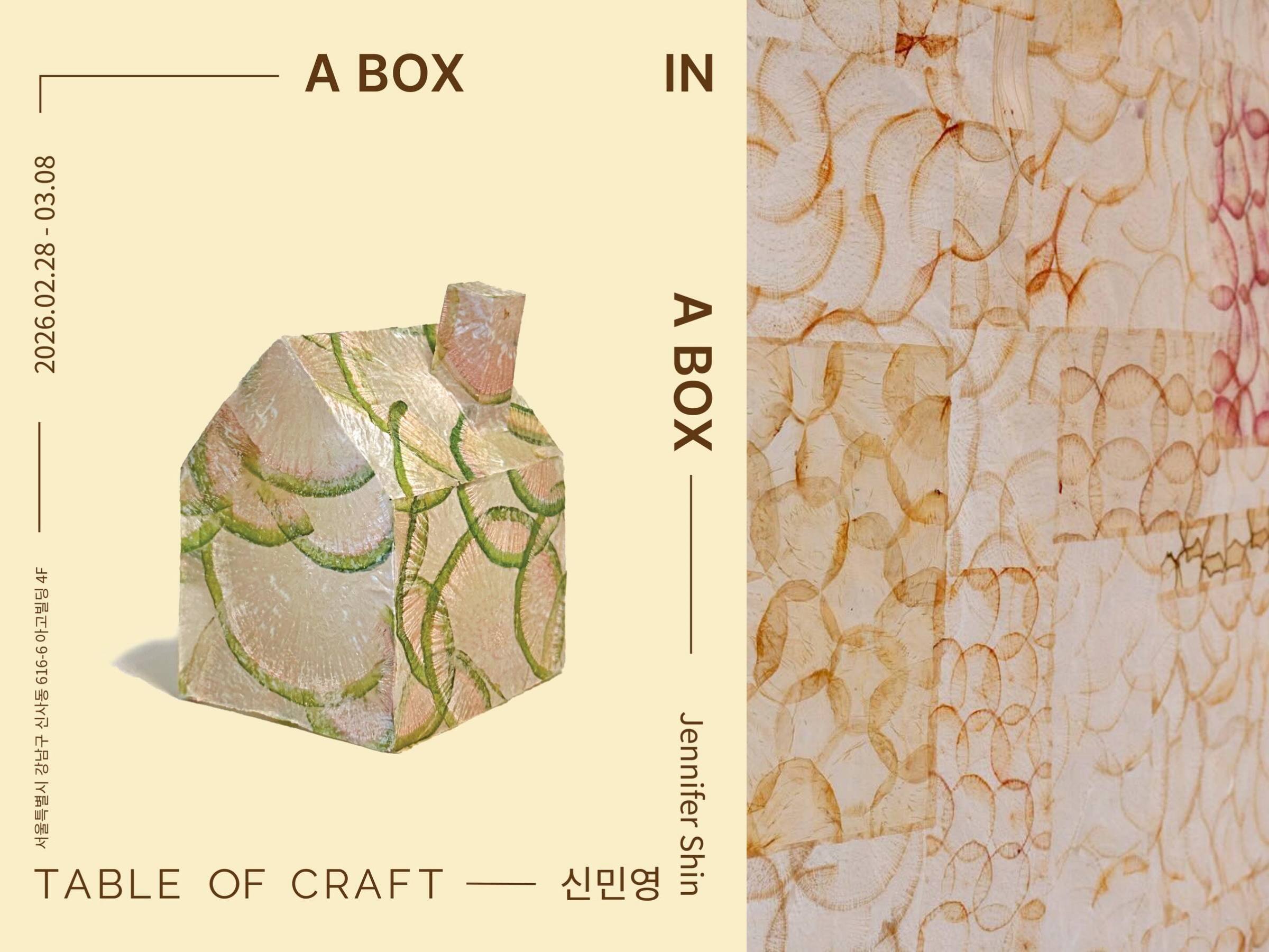 TOC의 새로운 프로젝트 ‘OPEN TABLE’이 신민영 작가의 전시 〈A Box in a Box〉로 첫 장을 연다. TOC의 테이블을 함께 나누고 그 위에서 다양한 실험을 시도하기 위해 기획된 프로그램으로, 공간을 하나의 작업 플랫폼으로 확장한다. 전시는 야채로 만든 종이로 제작한 상자 구조물을 중심에 둔다. 재료를 말려 종이를 만들고, 다시 접고 조립하는 반복의 손동작은 사라질 물성에 질서를 부여하는 수행에 가깝다. 테이블 위 구조물은 집이 되거나 선물 상자가 되며 끊임없이 변주되고, 그 과정 속에서 야채 종이라는 매체의 확장 가능성을 탐색한다. 음식과 종이를 매개로 시간성과 감각을 다뤄온 작가의 태도가 응축된 자리다. 전시는 2월 28일부터 3월 8일까지 강남구 아고빌딩 4층에서 진행된다.