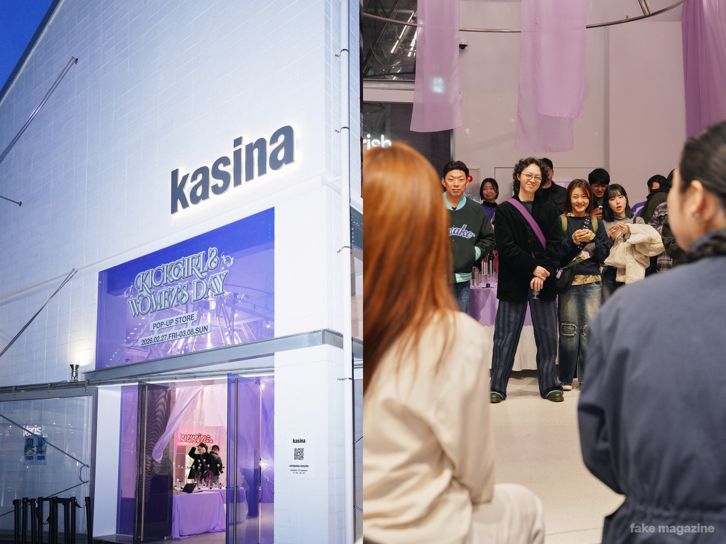 이번 팝업은 페이크매거진과 함께 이어온 ‘KICKGIRLS’ 프로젝트의 연장선에 있다. 서로 다른 분야에서 활동하는 여성 아티스트를 조명해 온 이 캠페인은 ‘FIVE SENSES’를 주제로 여성 창작자의 삶과 작업, 그리고 일상 속 스니커즈의 감각을 기록해 왔다. 이번에는 그 기록을 오프라인 공간으로 확장해 아카이브 전시 형태로 선보인다. 지난 2월 27일 열린 오프닝에서는 여성 창작자로서의 여정과 연대를 주제로 한 토크 세션과 KONA의 사운드 퍼포먼스가 이어졌다. 캠페인의 기록을 되짚는 전시는 카시나 성수에서 3월 8일까지 이어진다.