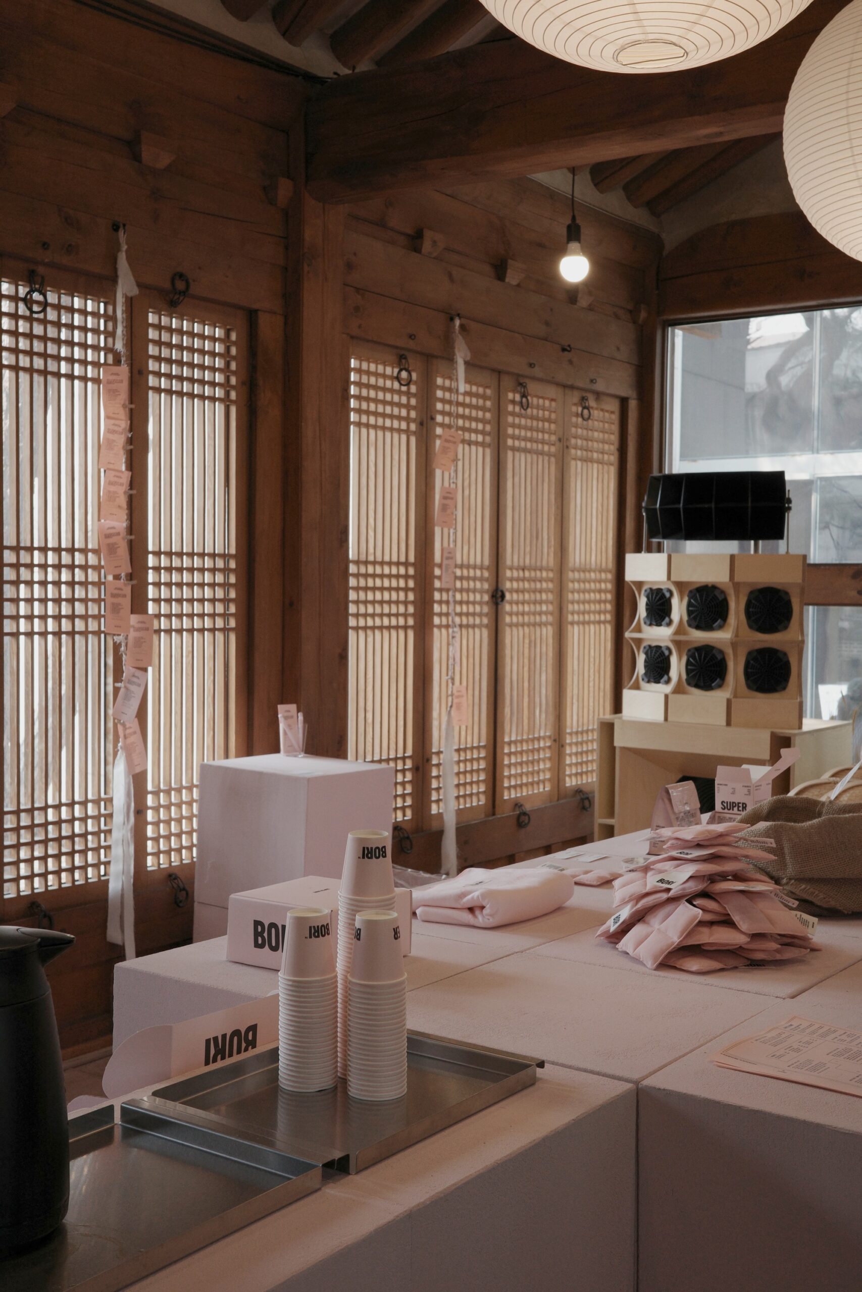 이번 팝업은 ‘잘 자기 위한 여섯 가지 여정(The Way of Good Night, Bori)’이라는 콘셉트로 구성됐다. 팝업이 준비된 북촌 아트선재센터 한옥에 들어서면 여섯 개의 챕터가 차례로 이어진다. 관람객은 각 공간을 지나며 저마다 간직하고 있는 밤의 리듬을 천천히 떠올리게 된다. 여정의 시작은 따뜻한 슈퍼보리 한 잔이다. 빠르게 각성하는 카페인 대신, 곡물 음료의 온기로 몸의 긴장을 풀어내는 순간이다. 이어지는 공간에서는 슈퍼보리의 원료인 보리, 호밀, 치커리를 만난다. 세 가지 곡물이 가진 시간과 성질을 따라가다 보면 한 잔의 음료가 만들어지는 과정이 자연스럽게 그려진다.