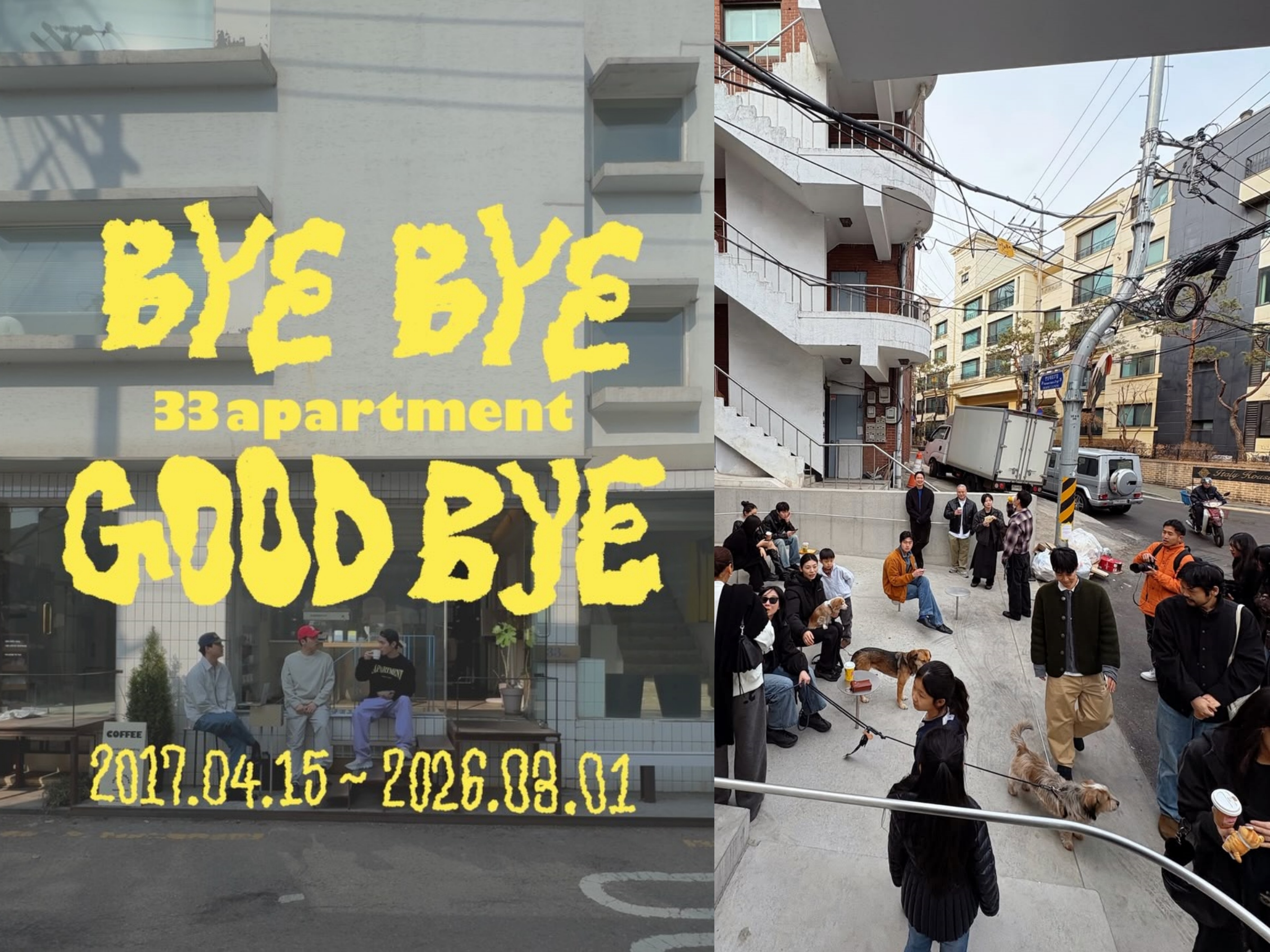2017년부터 약 9년간 한남동 조용한 골목을 지켜왔던 33아파트먼트(33apartment)가 올해 3월 영업을 마무리했다. 33아파트먼트는 아트디렉터 차인철, 바리스타 이기훈을 비롯해 서로 다른 분야에서 활동하던 친구들이 함께 만든 공간으로, 커피를 중심으로 인테리어, 그래픽, 굿즈 등을 하나의 흐름으로 엮어왔다. 다양한 브랜드 협업과 팝업, 전시 등 외부 프로젝트를 통해 그 방식을 확장해왔고, 매장 역시 그 연장선에서 끊임없이 변주되어 왔다.
