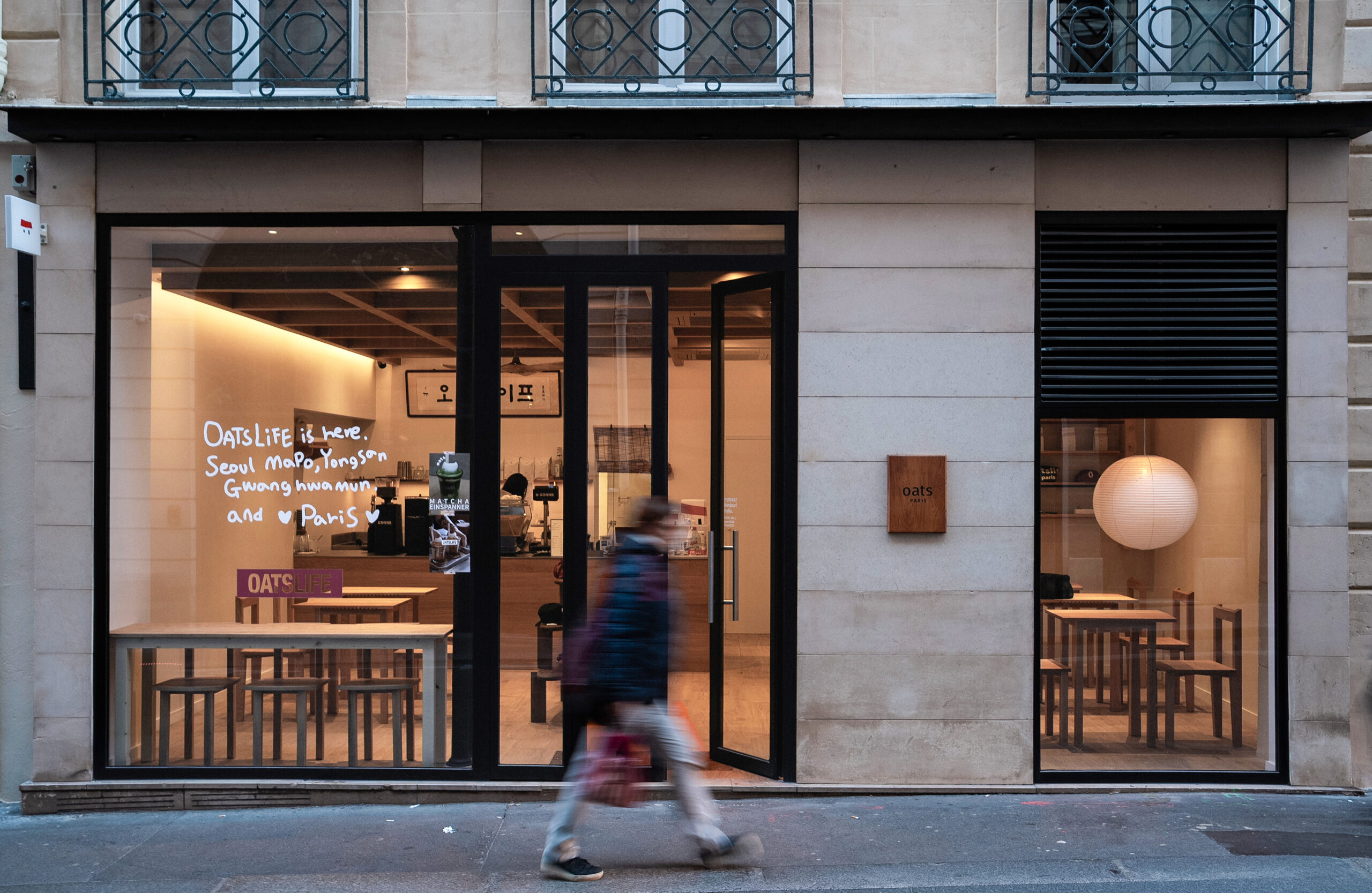 해외의 한국 디저트 카페가 국내에도 소개될 때쯤, 반가운 소식이 들려왔다. 아인슈페너 맛집으로 알려진 오츠커피가 프랑스 파리, 그것도 중심부인 파리 1지구에 매장을 열었다는 뉴스였다. 한국 마이크로 커피 브랜드가 해외에 매장을 낸 것은 처음 있는 일이다. 문 옆에 작은 간판이 오츠커피임을 알려주지만, 제일 눈에 띄는 건 유리창 너머에 당당히 한글로 ‘오츠라이프’라고 적힌 액자다. 오츠커피를 아는 사람이라면 반가운 글씨다.