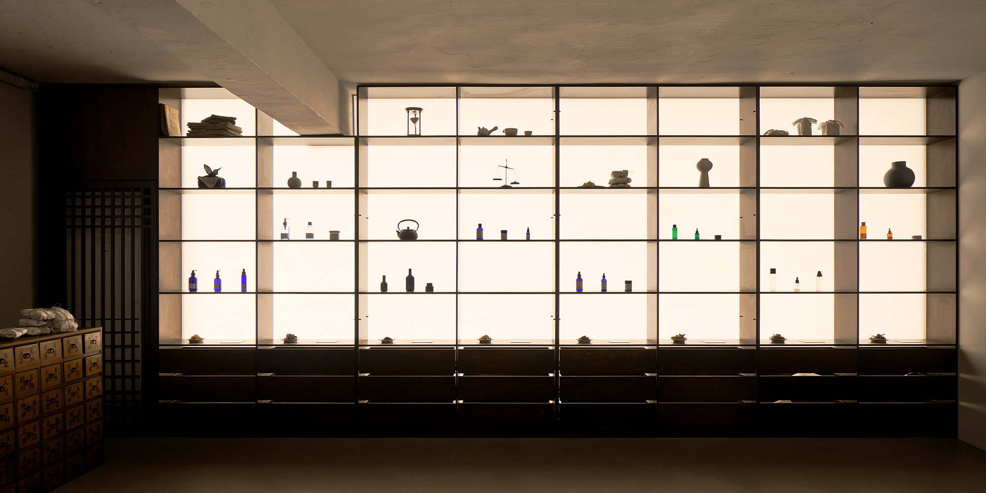 편강율이 전하는 쉼과 균형의 철학을, 차 한 잔과 함께 고요한 공간 속에서 경험할 수 있는 티하우스 / B1층 헤리티지 전시공간 - 수백 년간 한국에 이어져온 한방의 지혜와 편강율이 담아온 50년 한방 철학을 경험할 수 있는 헤리티지 전시 공간 / 2층 스킨케어 쇼룸 -